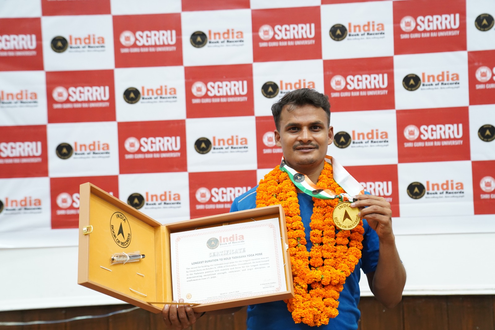 एसजीआरआर विश्वविद्यालय के योग छात्र उत्तमअग्रहरि ने ताड़ासन का बनाया राष्ट्रीय रिकार्ड